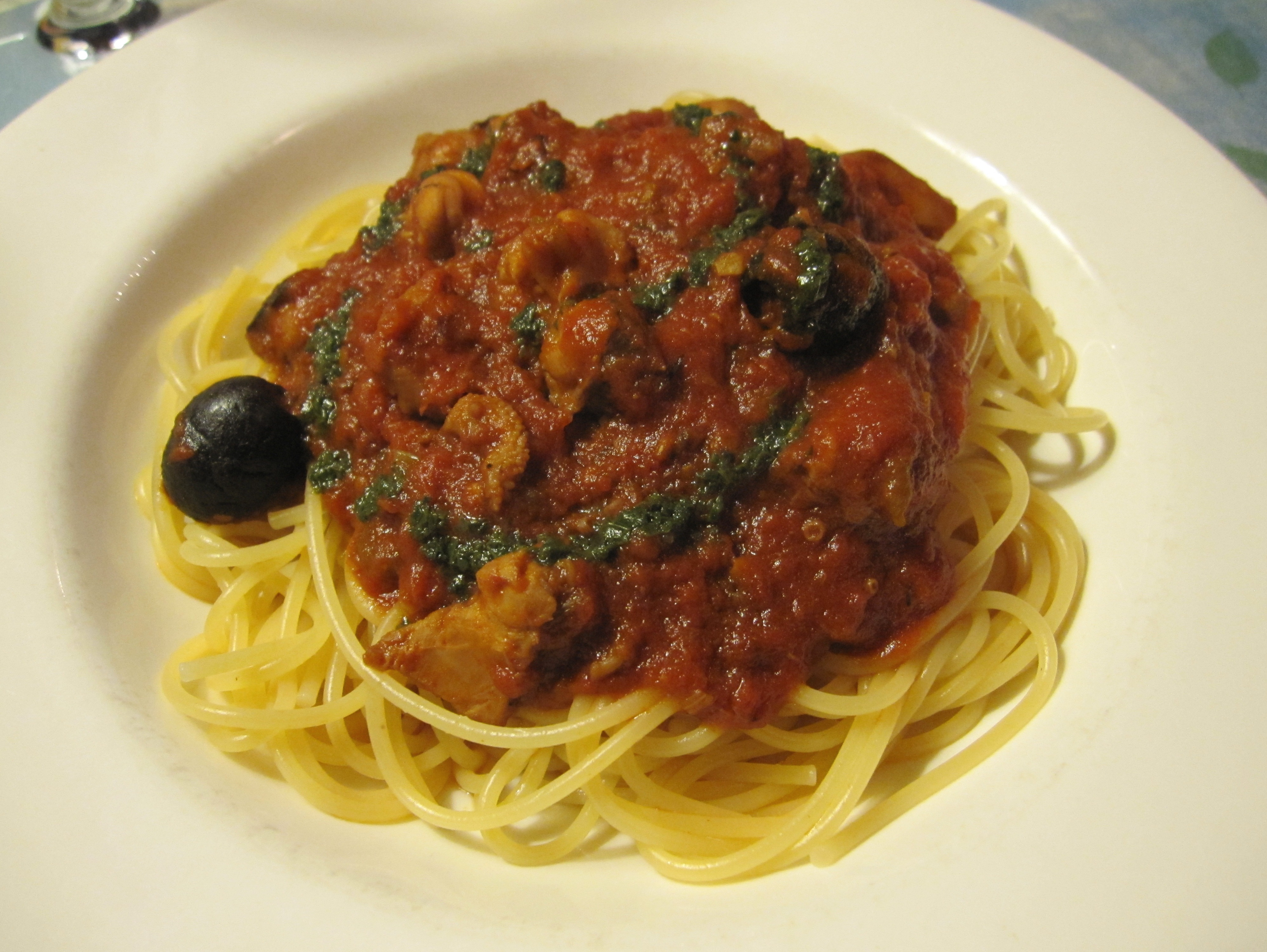 パスタはまず「殻付きえびのトマトソース」です。カリッとした海老にピリ辛のトマトソースがからまり、コクのある美味しさでした。