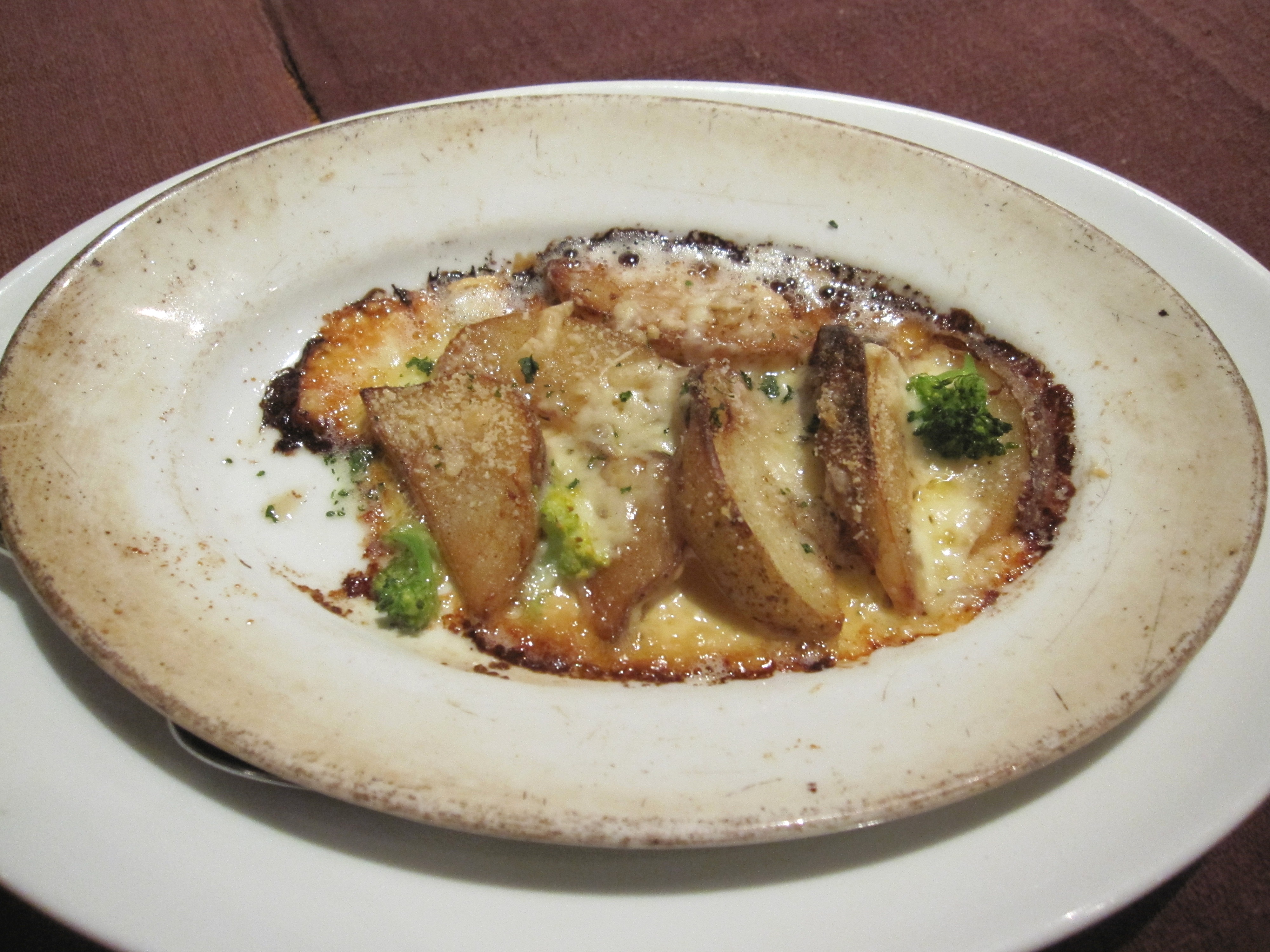 3品目に「ポテトと4種のチーズのグラタン」。ポテトにチーズがたっぷり乗った、アツアツのグラタンです。