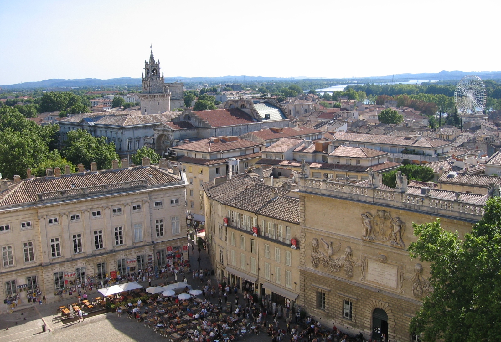 駅の前には、アヴィニョンの旧市街を一周する城壁の入り口である、レピュブリック門が立派に立っていました。この門を抜けて、レピュブリック大通りを真っ直ぐ6、7分歩くと、旧市街の中心地である時計台広場に着き、その直ぐそばのホテル・ガルランドHotel de Garlandeにチェックインしました。