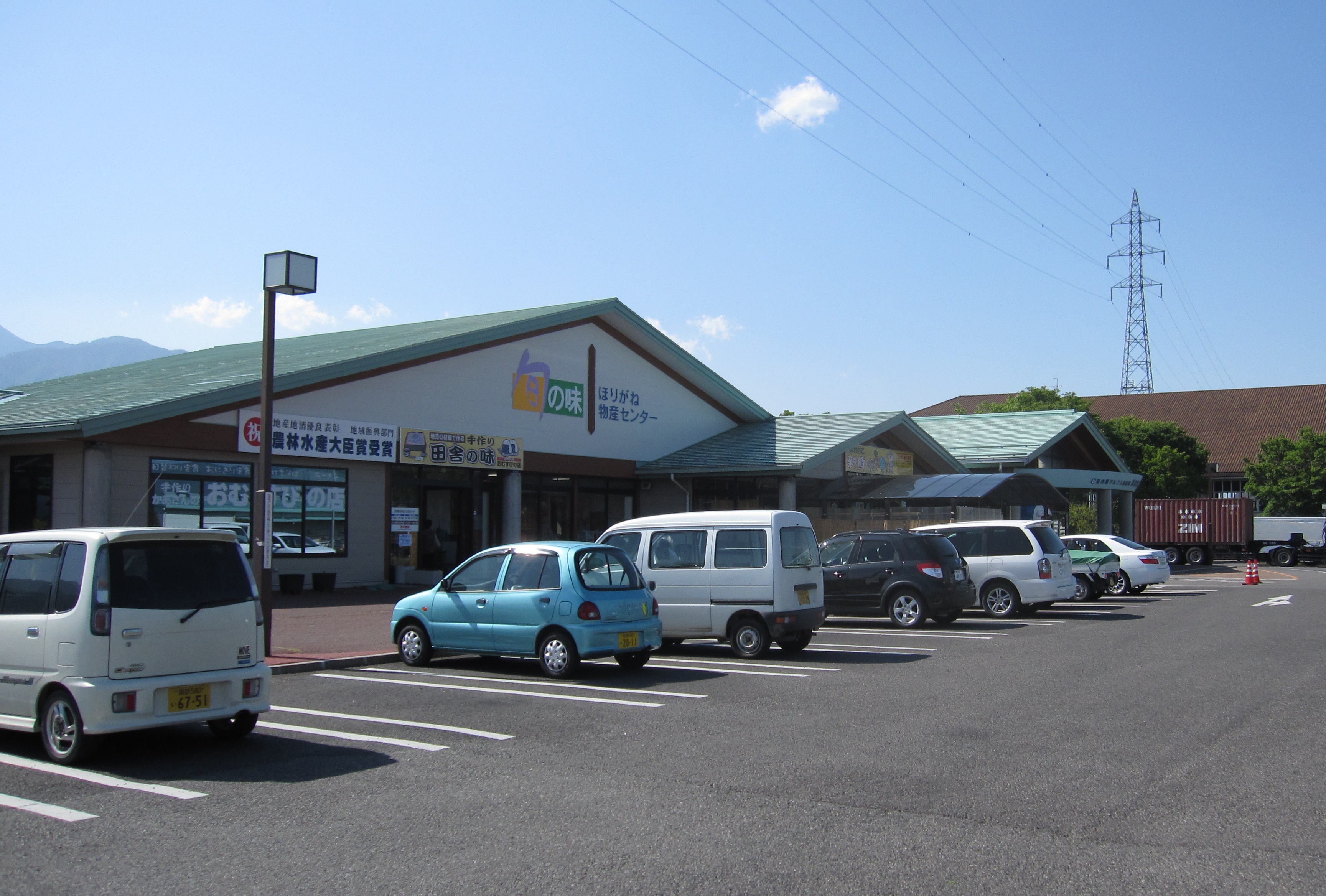 午後一番で山荘を車で出て、諏訪インターから豊科インターまで高速を走り、1時間20分で安曇野市内の道の駅「ほりがね物産センター」に着きました。
