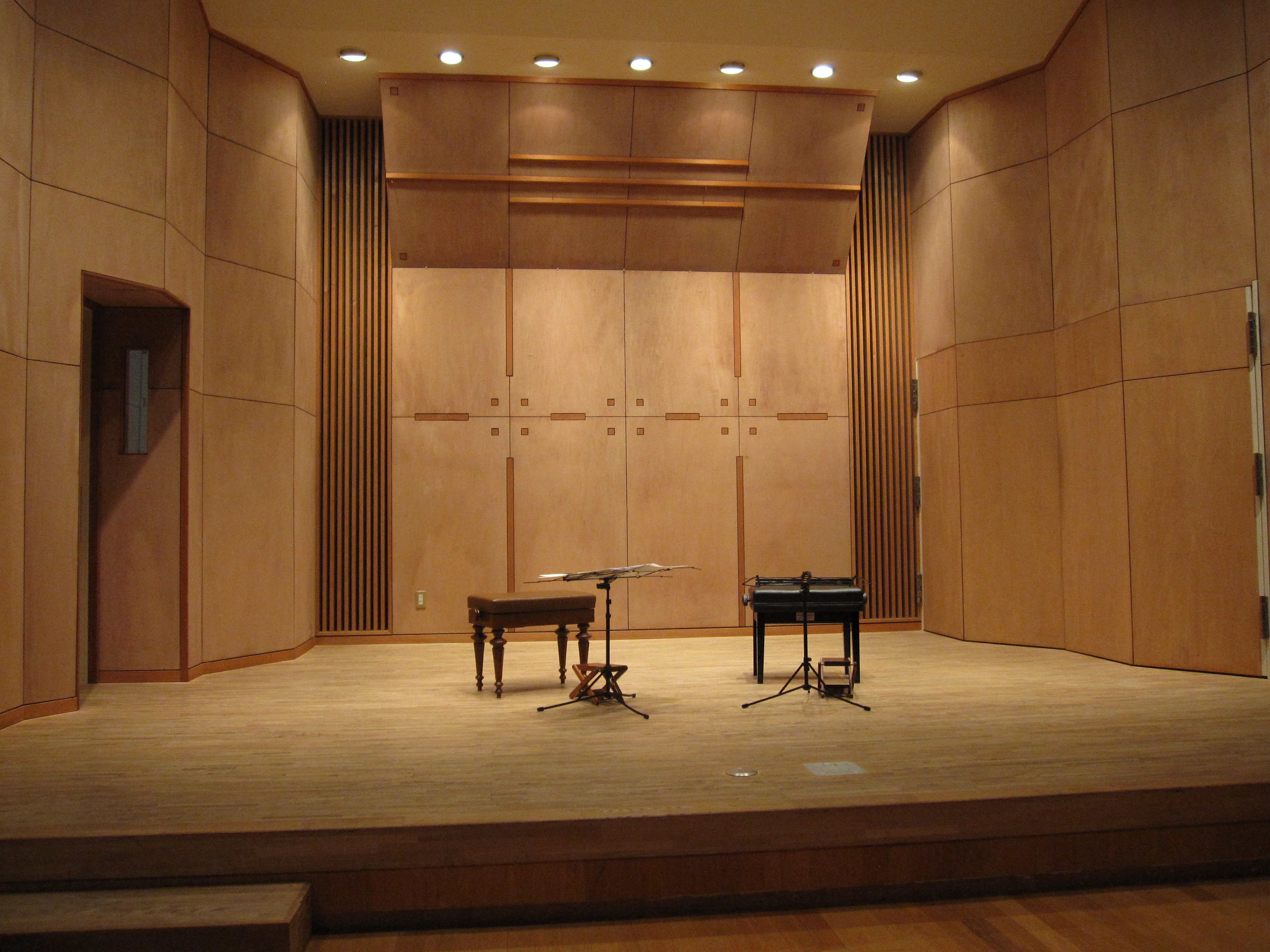 ホールは100席程度のこじんまりしたものですが、音量が小さいクラシックギターのリサイタルにはこの程度の大きさは手頃です。