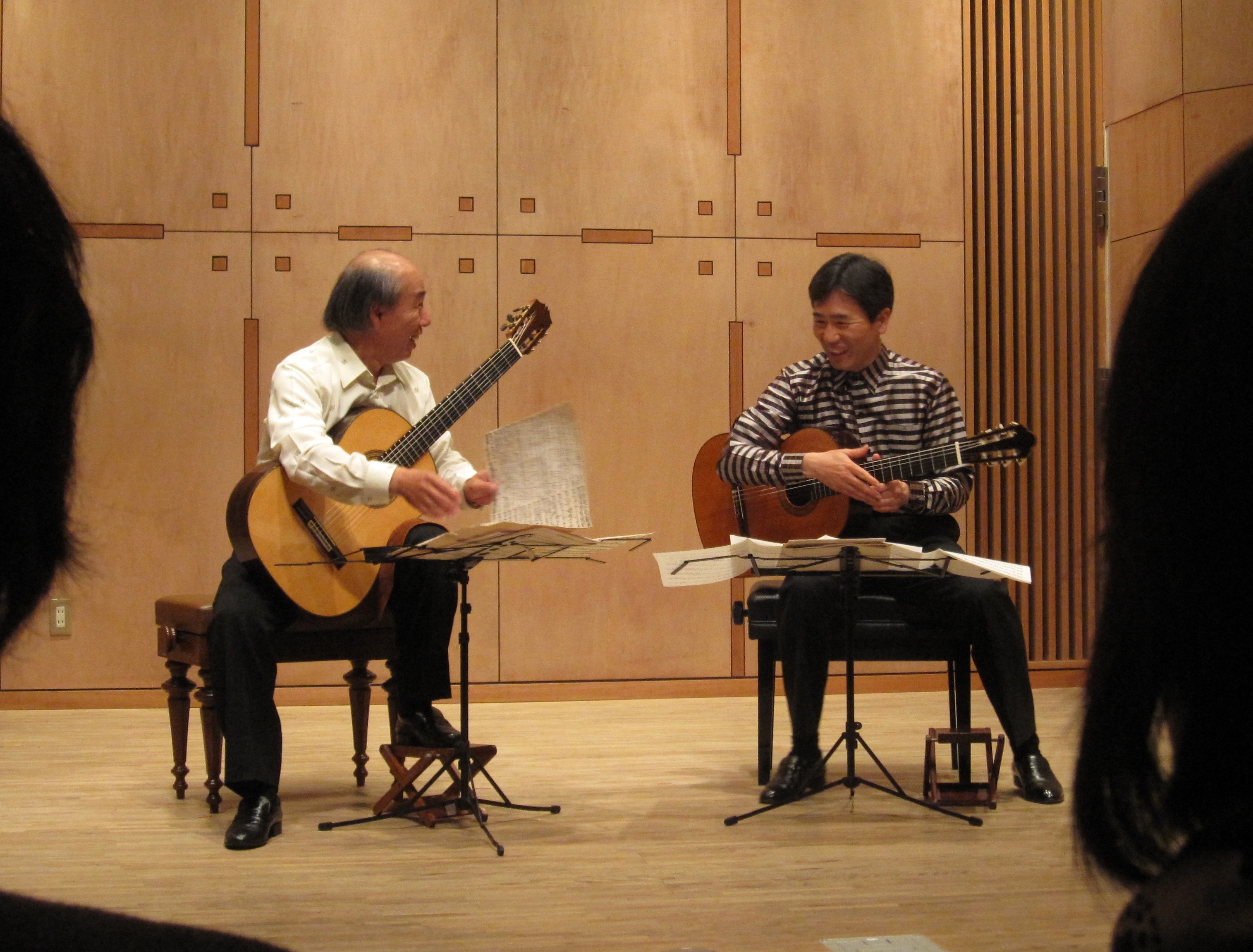 この日は地元のギタリスト・伊藤正己氏と兵庫県明石市在住のギタリスト・稲垣稔氏のジョイントコンサートでした。