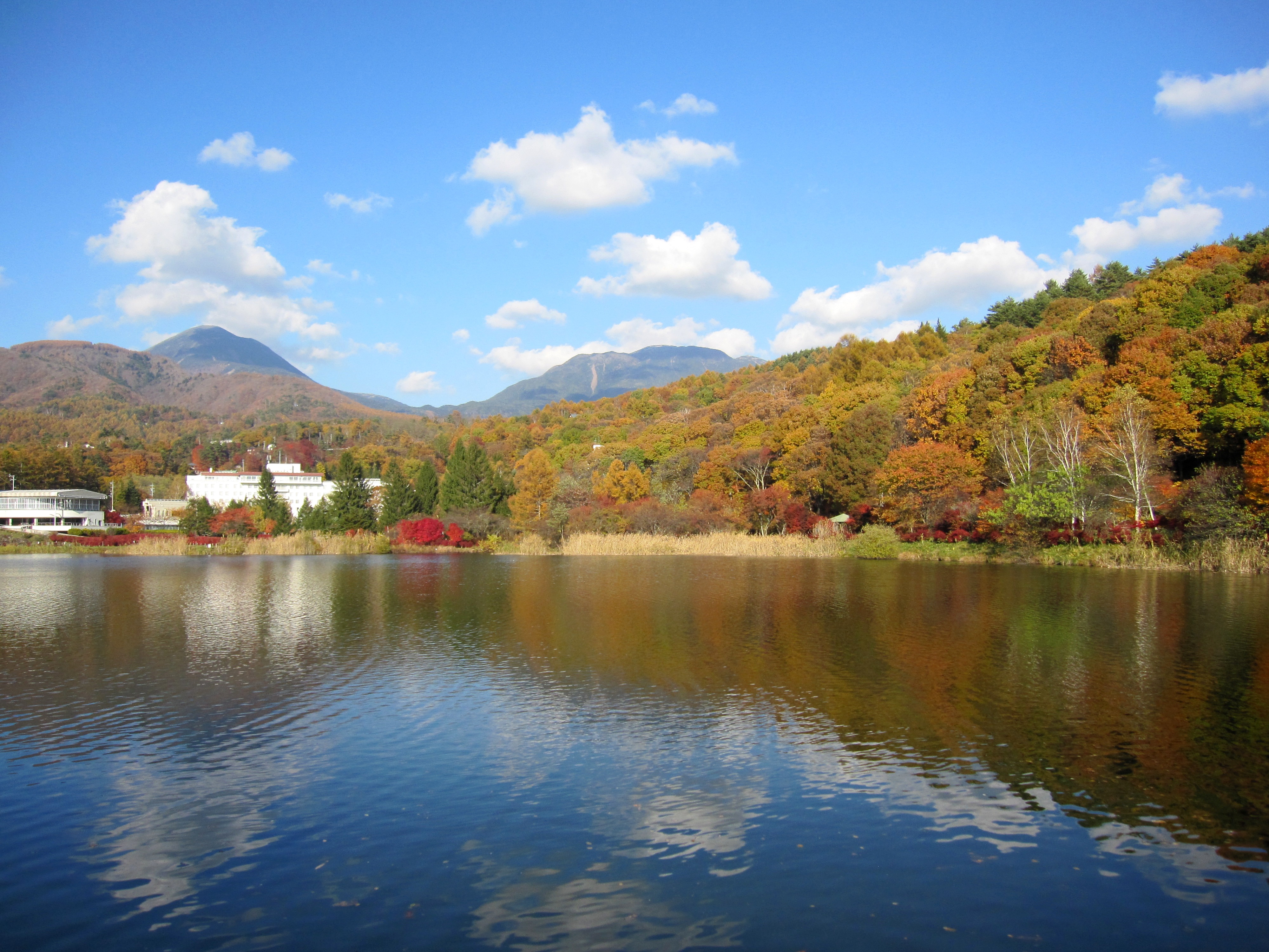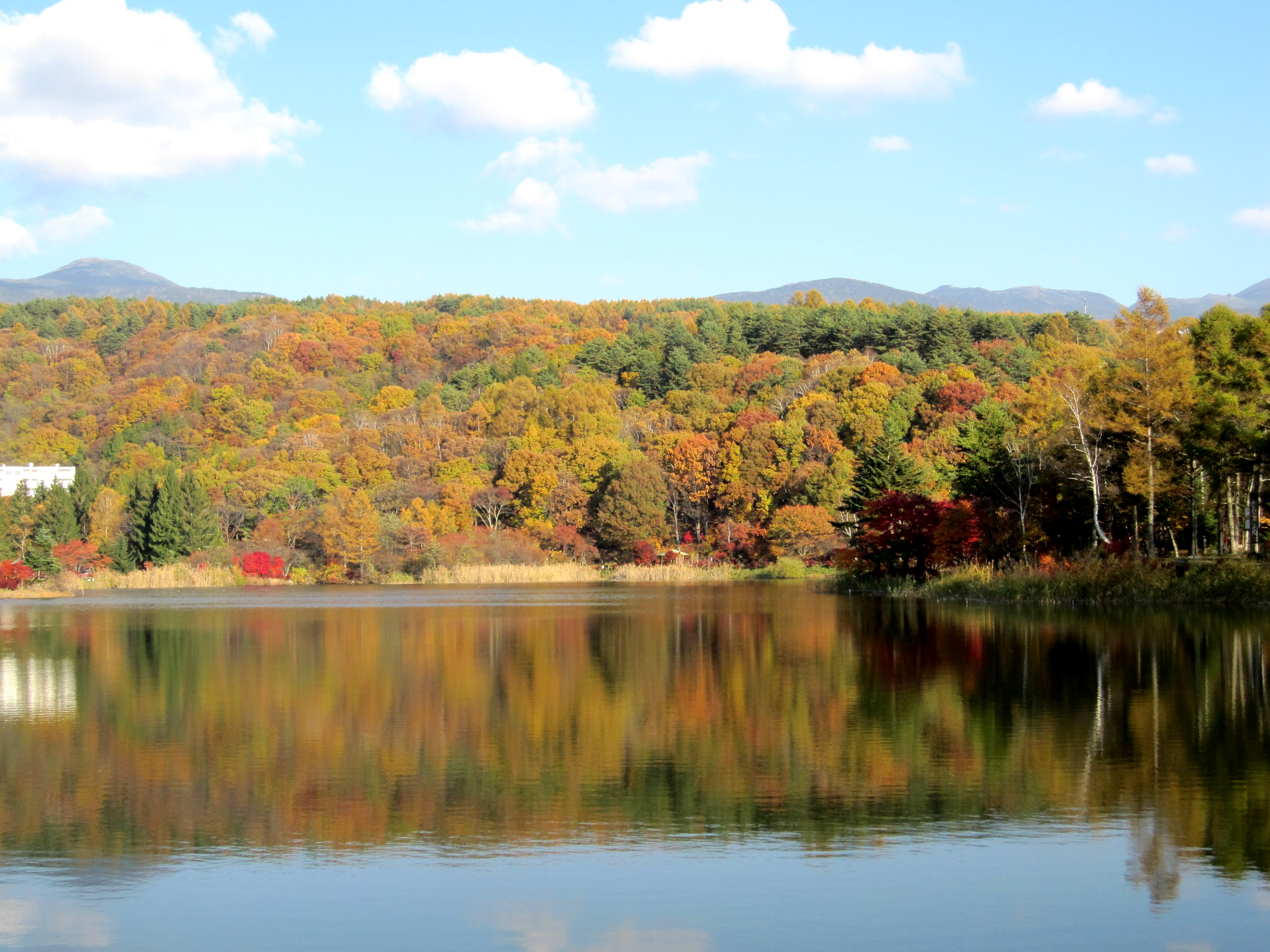 御射鹿池(標高1,528m)は東山魁夷画伯の名画「緑響く」のモデルになった池で、春、夏、秋を通じて、写真スポットとなっています。