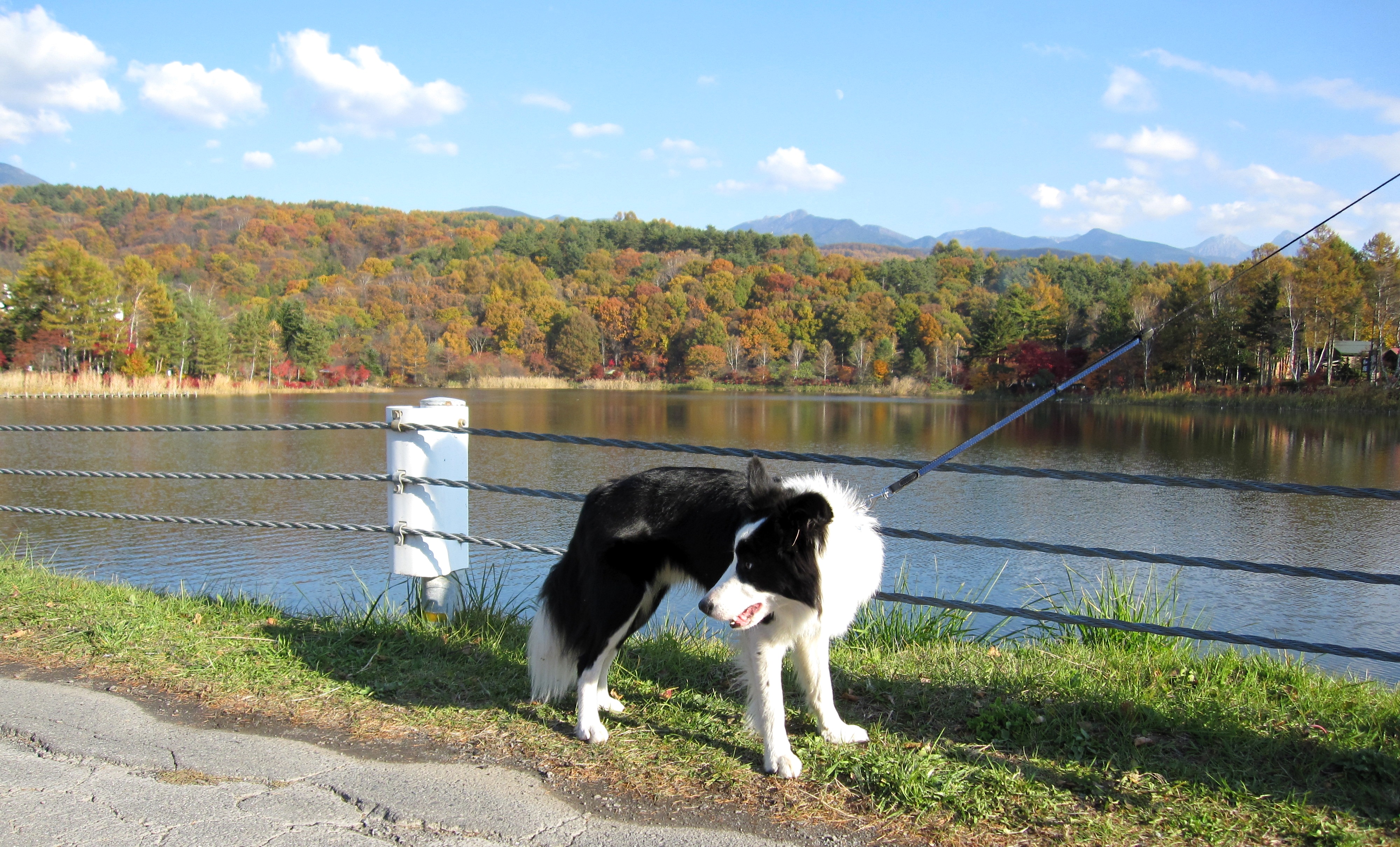 今日もいい天気でしたので、午後ランディを連れて、蓼科湖を一周して散歩しました。