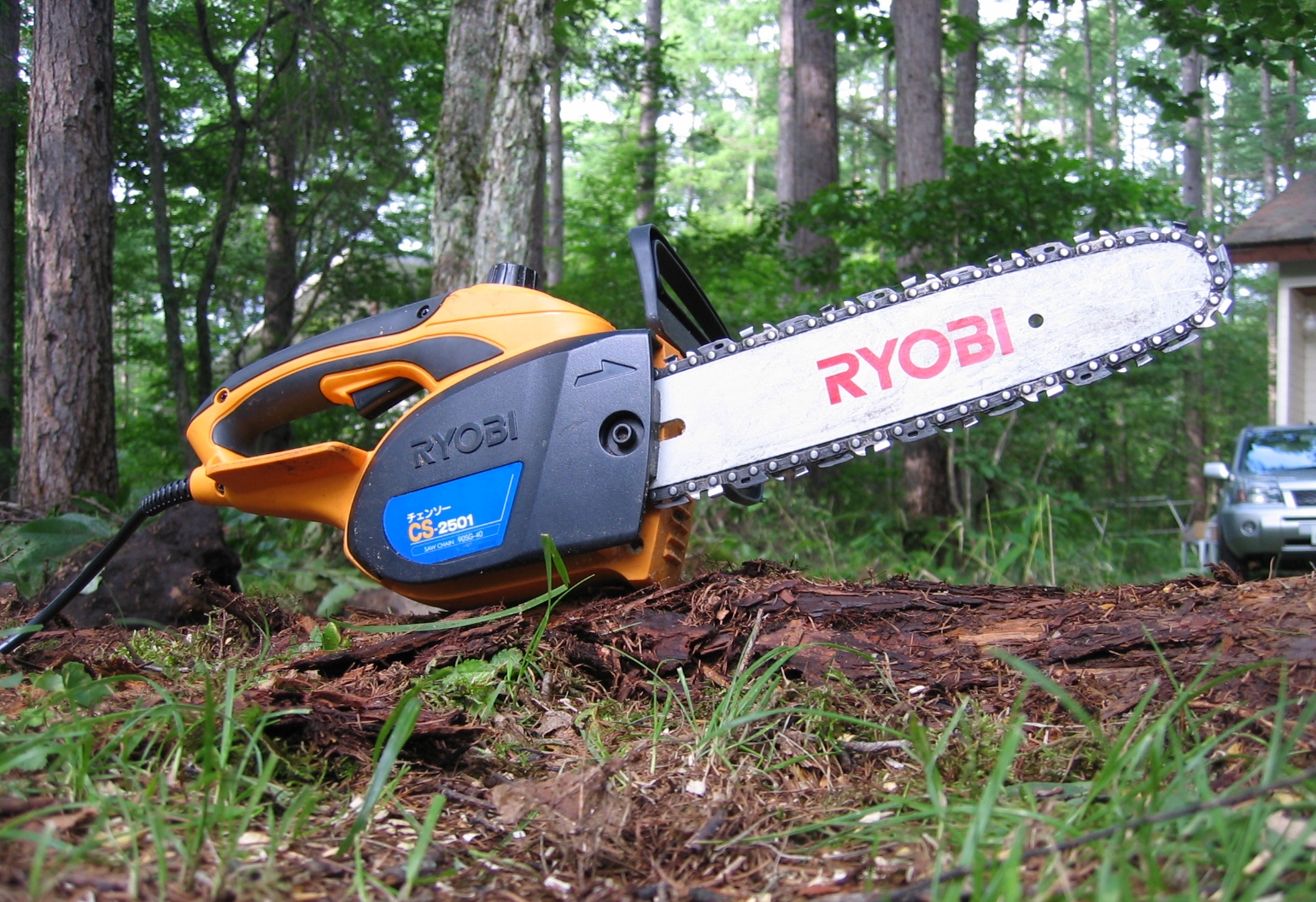 我が家のチェーンソーは電動式チェーンソーの中でも一番小型のものですが、それでもなかなか役に立ちます。