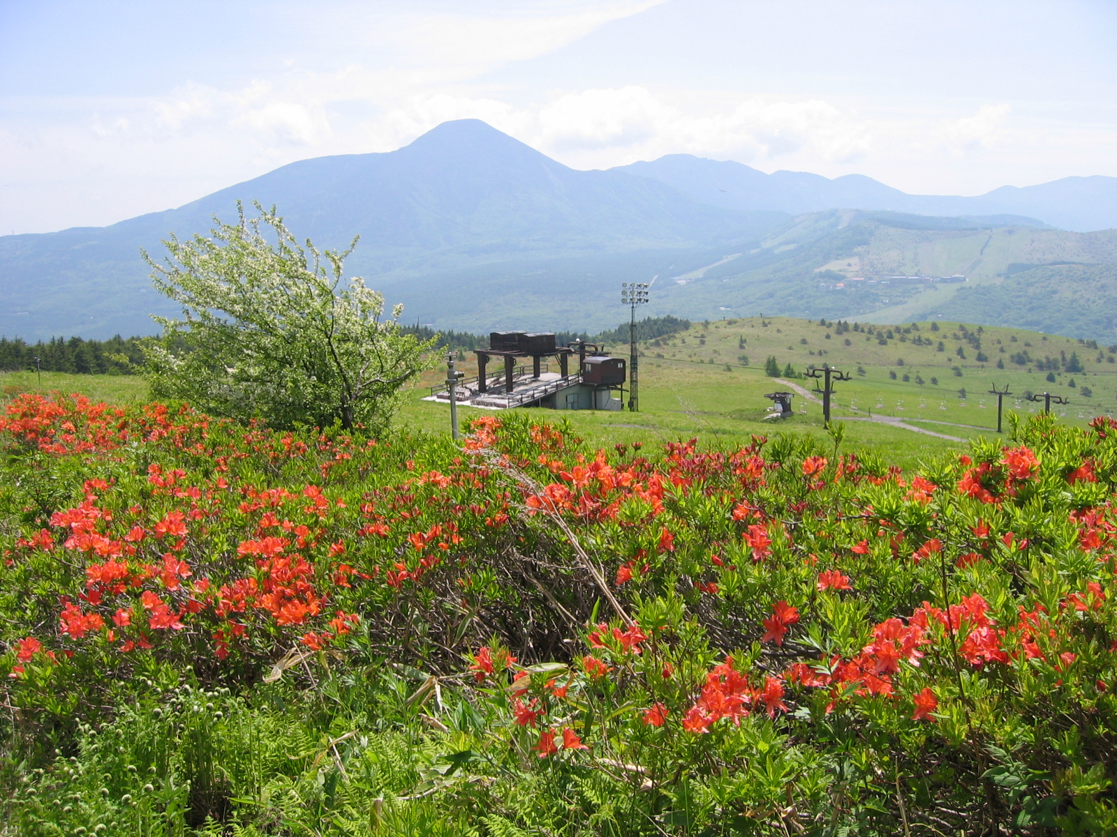 <車山高原スノーパーク/向こうに見えるのは蓼科山とその右が北八ヶ岳>