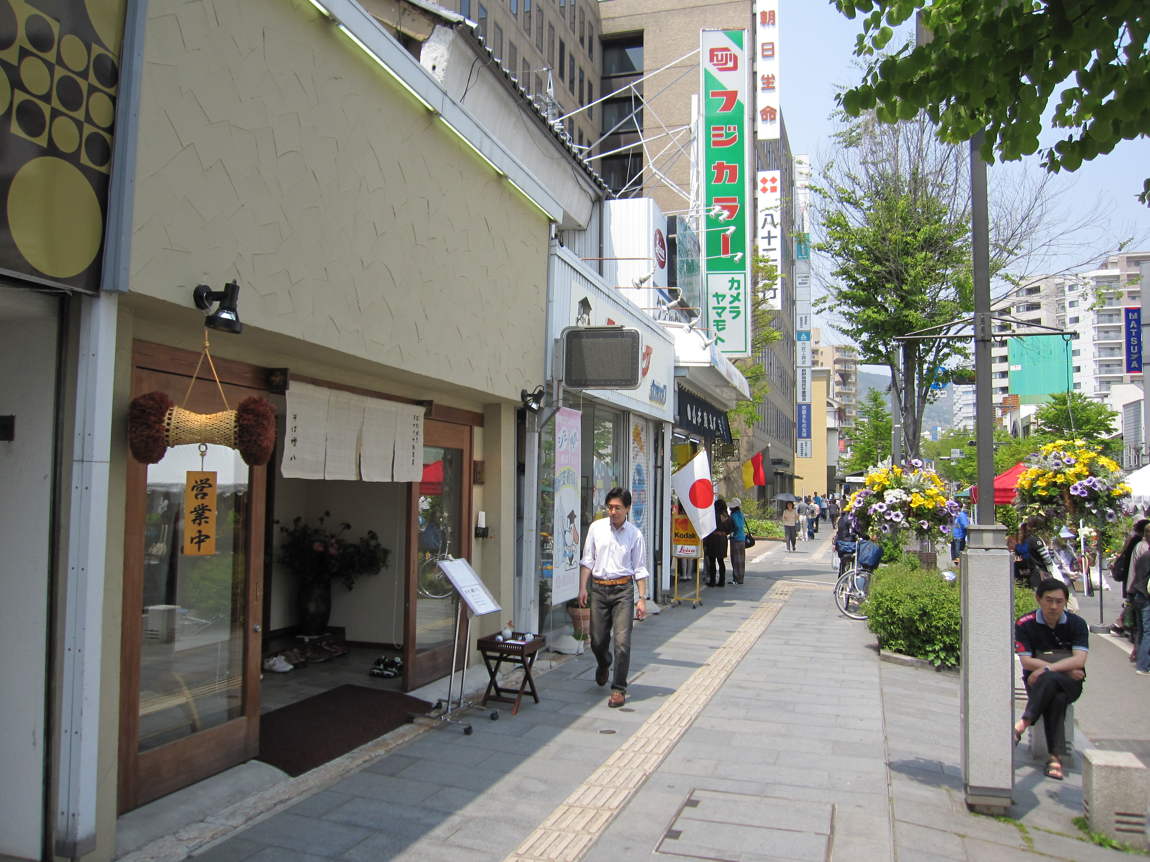 4日は茅野市では御柱祭の上社・里曳きが行われていて、茅野市内は大渋滞になっていると考えられたので、これを避けて、諏訪南インターから 中央高速に乗りました。長野自動車道、上信越自動車道を通って、長野駅前中心街には2時間ちょっとで着きました。