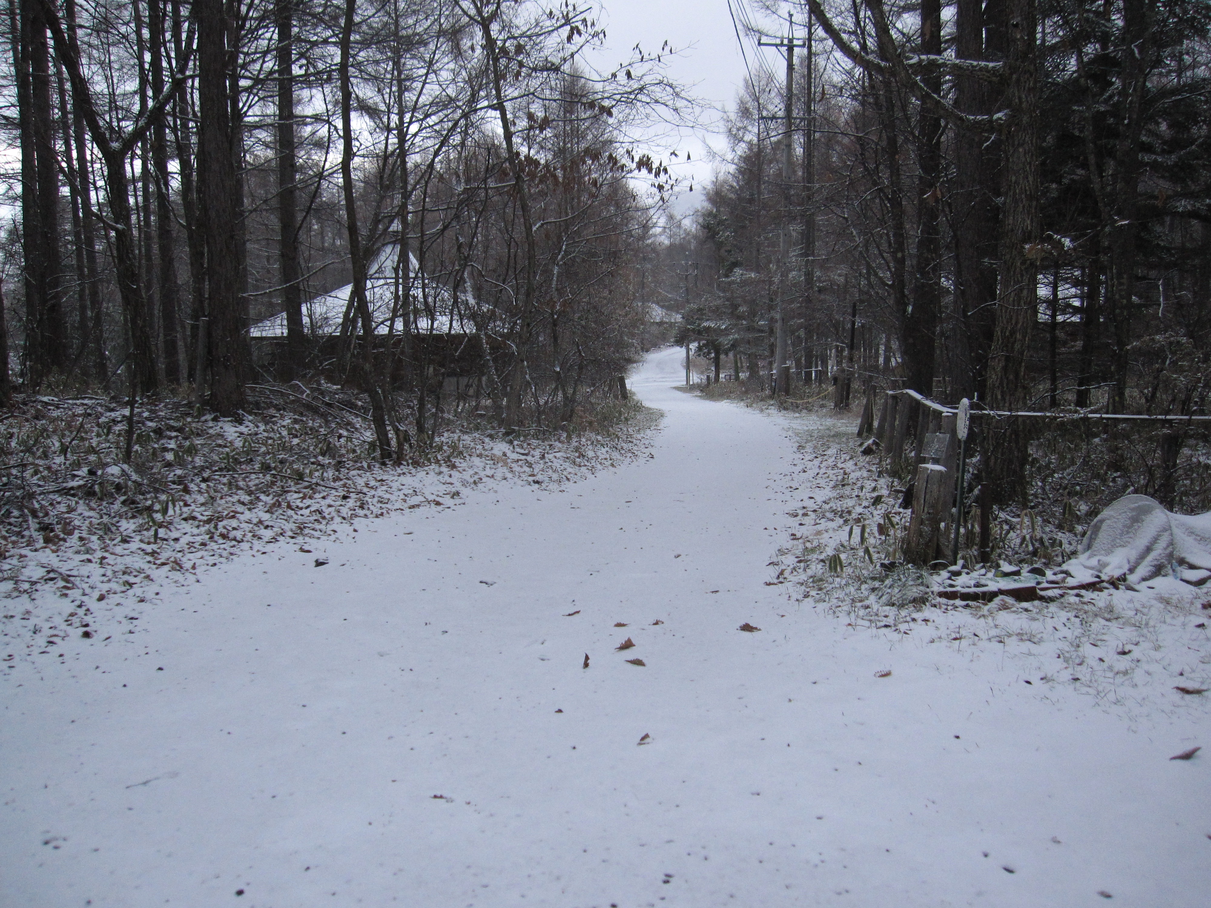 この積雪のままでは車を動かせません。午後も小雪が降り続いていましたが、アプローチの雪掻きをしました。まとまった雪でしたので、人力で一通り雪掻きを終えると、一日の運動量としては十分なエネルギー消費となりました。